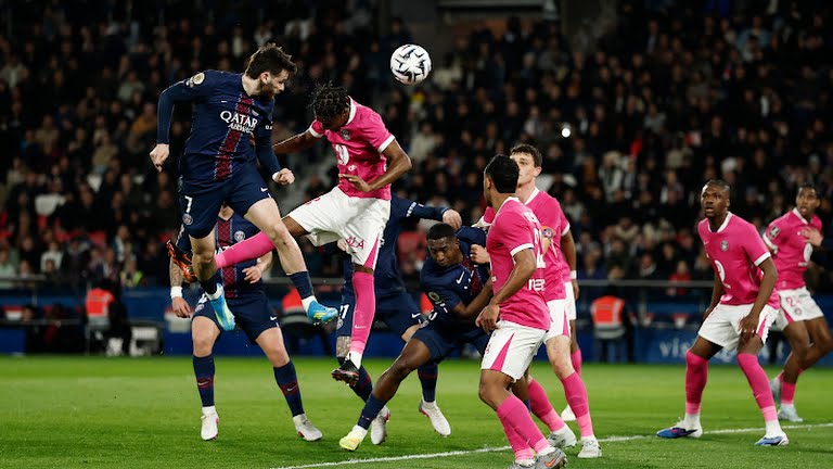 Berawal dari sepak pojok melengkung Lee Kang-In yang diteruskan oleh sundulan Kvaratskhelia, Dembele yang berdiri tanpa kawalan di depan gawang dengan mudah menceploskan bola, skor 2-1 untuk keunggulan PSG bertahan hingga turun minum