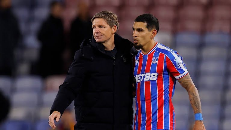 Oliver Glasner bersama Daniel Munoz (Sumber: Linimasa)